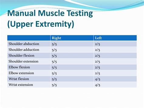 Web the manual muscle testing of muscles of scapula and upper limbs was performed as to mimic a bedside clinical examination and involved an examiner, a. Web this study suggests that manual muscle testing in upper limb disorders has diagnostic potential. Muscle strength is the most important predictor of function, mobility, independence, and activities of daily living.