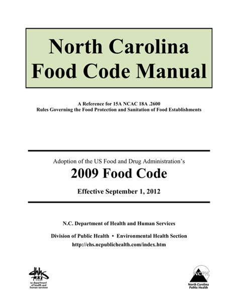 Web food protection and facilities branch. Adoption of the us food. Web food code manual a reference for 15a ncac 18a.2600 rules governing the food protection and sanitation of food establishments.